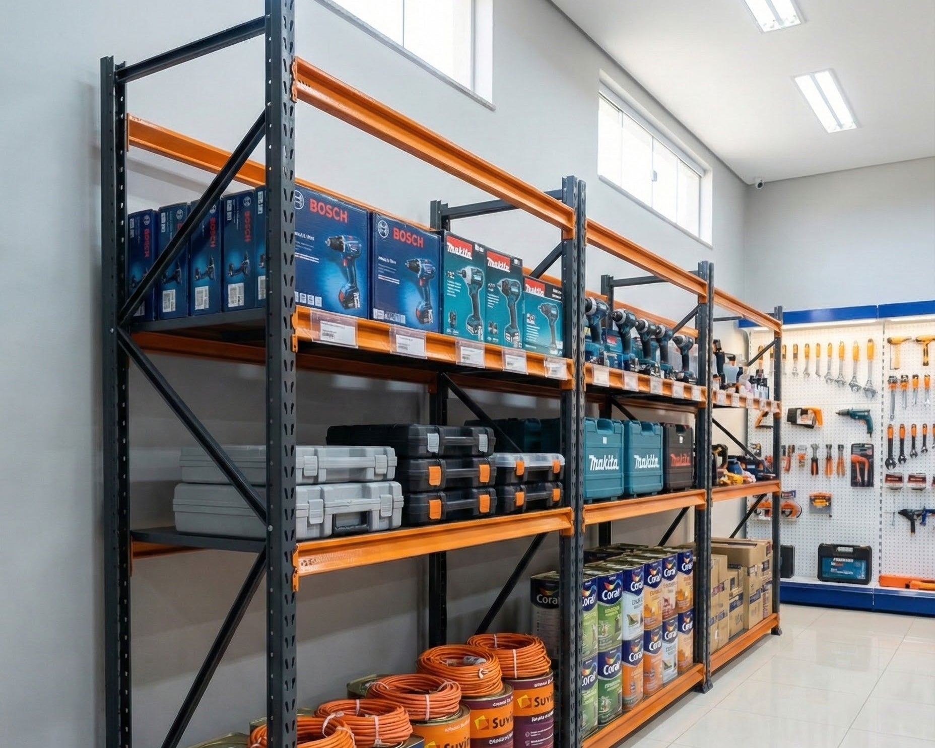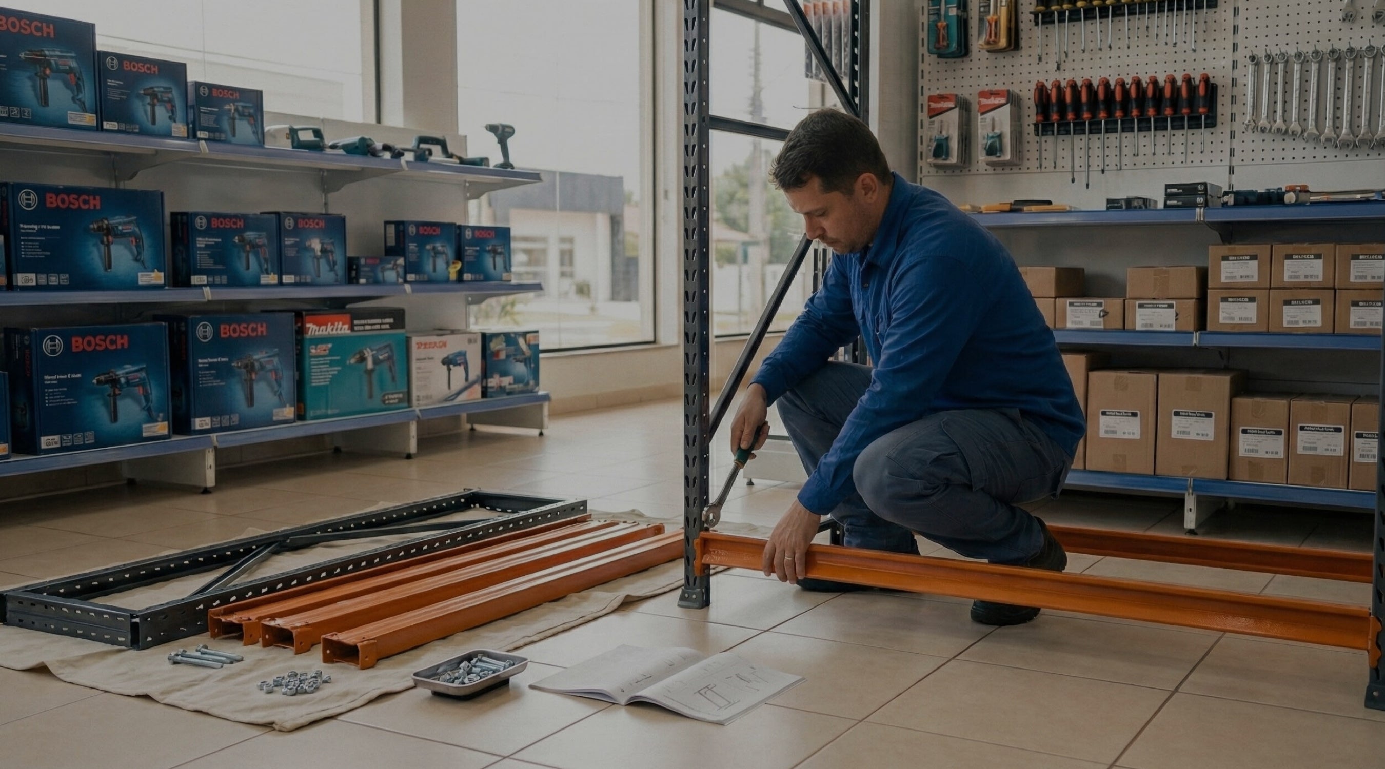 Meu espaço era pequeno e sempre ficava bagunçado. Depois que instalei os mini porta paletes, consegui liberar área no chão. Muito resistente e prático.